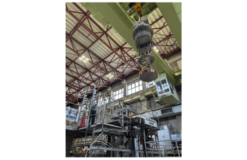 民間企業による装置開発も着実に進展しています。Helical Fusion は 2025年10月、核融合炉のキーパーツである高温超伝導マグネットについて、実機規模導体を用いたコイル試験に成功し、最終実証装置「Helix HARUKA」の製作・建設に着手する方針を公表しました。また、同コイルは核融合科学研究所(岐阜・土岐)の大口径高磁場導体試験装置に設置され、吊り上げ作業の様子が公開されています(図1:試験装置への設置風景)。