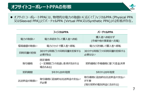 参考図2-公式:オフサイトコーポレートPPAの形態(フィジカルPPA/バーチャルPPA)(出典:環境省「オフサイトコーポレートPPAについて(2025年2月更新版))