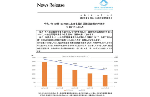 「令和7年10月1日時点における最終保障供給契約件数を公表しました」(2025年10月15日)