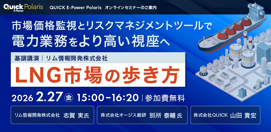 QUICK E-Power セミナー 市場価格監視とリスクマネジメントツールで電力業務をより高い視座へ ~基調講演:LNG市場の歩き方(登壇:リム情報開発)~
